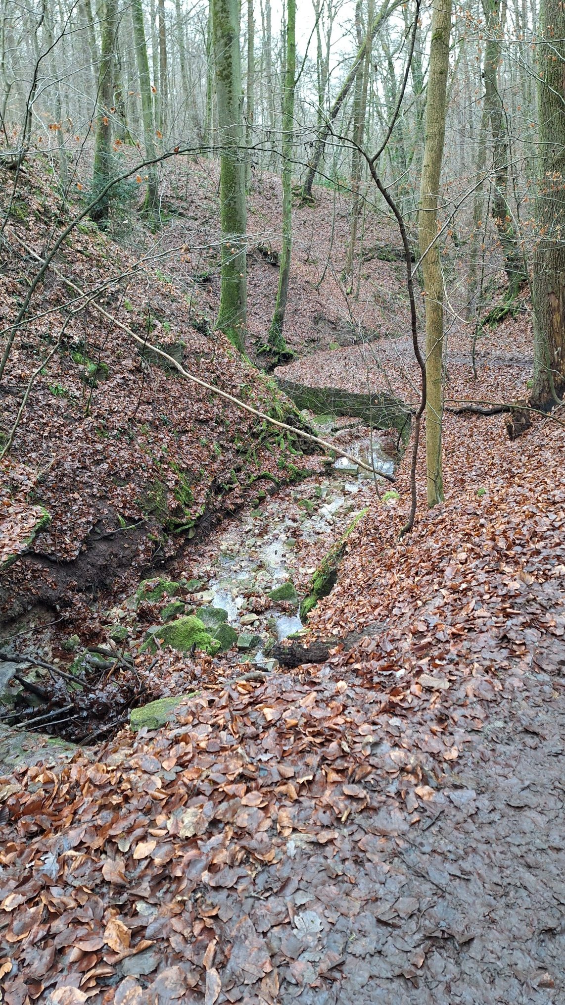Nach einer kurzen Pause (WC) steigen wir hinunter zur Schwälblesklinge. Achtung: der Weg könnte matschig und rutschig sein! Auch im Winter ist die Landschaft hier sehr sehenswert. Im Tal angekommen überqueren wir den Nesenbach am Ortsrand von Sonnenberg. Auf Waldwegen geht es nun wieder bergauf, vorbei am Heslacher Waldheim und den Tennisplätzen. Hier kehren wir ein zu einem Mittagsimbiss.