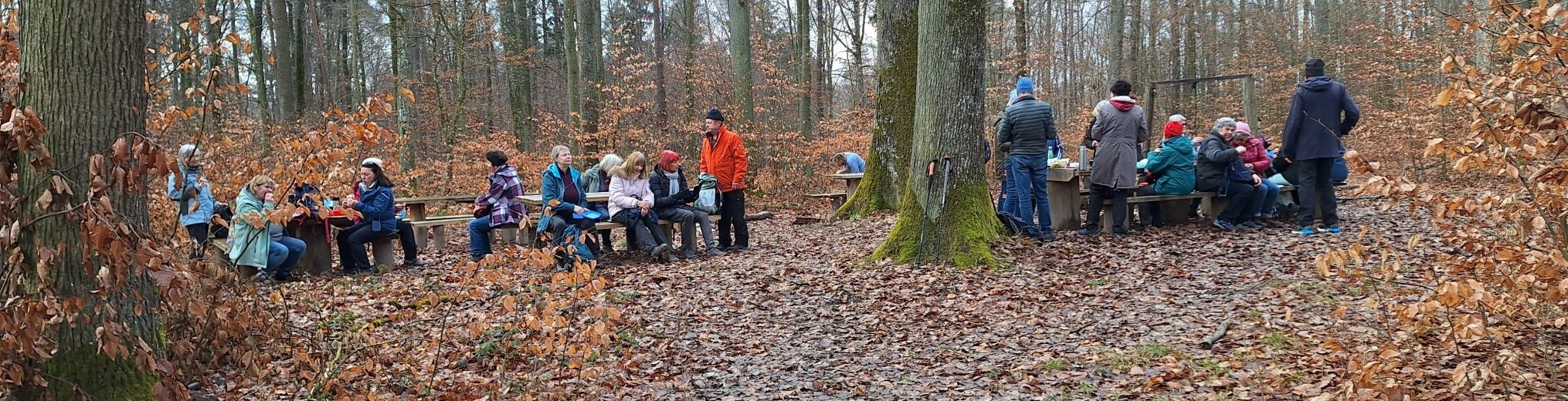 Wir staunten über die Weitsicht ins Remstal und genossen später an der Friedenseiche die Aussicht bis zu den Kaiserbergen. Nun ging es sanft abwärts durch den Wald bis zur Gaststätte „KTSV Hösslinswart“. Nach der Stärkung erwartete uns noch eine Stunde Abstieg durch Weinberge und Streuobstwiesen mit steter Aussicht auf das Remstal. Bis zum Bahnhof ging es auf verschlungenen Wegen durch Geradstetten. Die S-Bahn brachte uns vor Einbruch der Dunkelheit zurück nach Ludwigsburg.